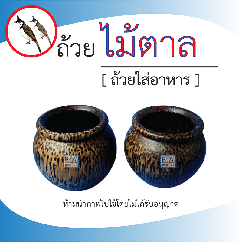 ถ้วยไม้ตาล_สำหรับใส่อาหารกรงนกหัวจุก / 1คู่