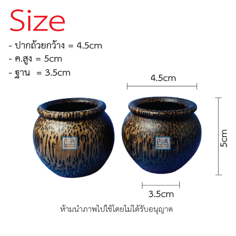 - Size : ขนาด : ปากกว้าง 4.5 ซม. ฐานกว้าง 3.5 ซม. ค.สูง 5 ซม.